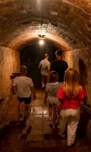 We will continue with the process of making our wines and sparkling wines, where we will visit our radial cellar located 12m underground (it is a radial cellar unique in the world due to its original six-pointed star structure and a central rotunda)